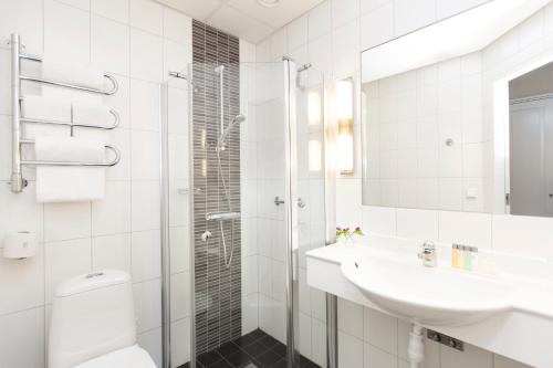 Detta rum har skrivbord, sitthörna och strykmöjligheter. I badrummet finns dusch och hårtork.